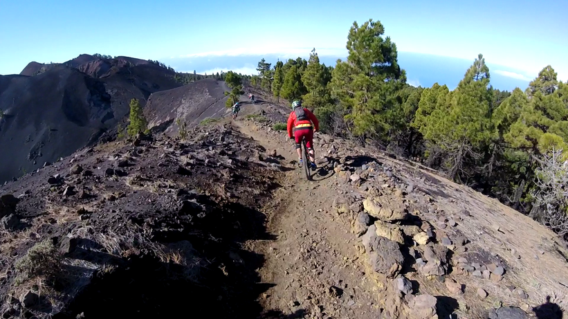 Letzter Tourtag mit Franzi hoch zum Pico de la Nieve und in den LP5. Im Pinienwald dann die neu gebaute EWS-Schleife, bei der erst einmal einiges hochzuschieben ist. Wadendehnübung bis zum Abwinken, ging auch schon mal besser. Dafür werden wir dann aber mit einem Sahnetrail belohnt, der sich herrlich tief als Hohlweg durch den Wald schlängelt. Nach erneuter Hochkurbelei gibt´s zum Abschluß einen Trail in ockerroter Erde, man kommt sich ein wenig vor wie in Utah. Mittagpause mit leckerem Kichererbsengericht und Shuttle zurück auf die Westseite zum Schäfertrail und Pina Colada - Trail. Barranco last not least. Das war´s dann mal wieder für dieses Jahr, geht immer viel zu schnell vorbei.